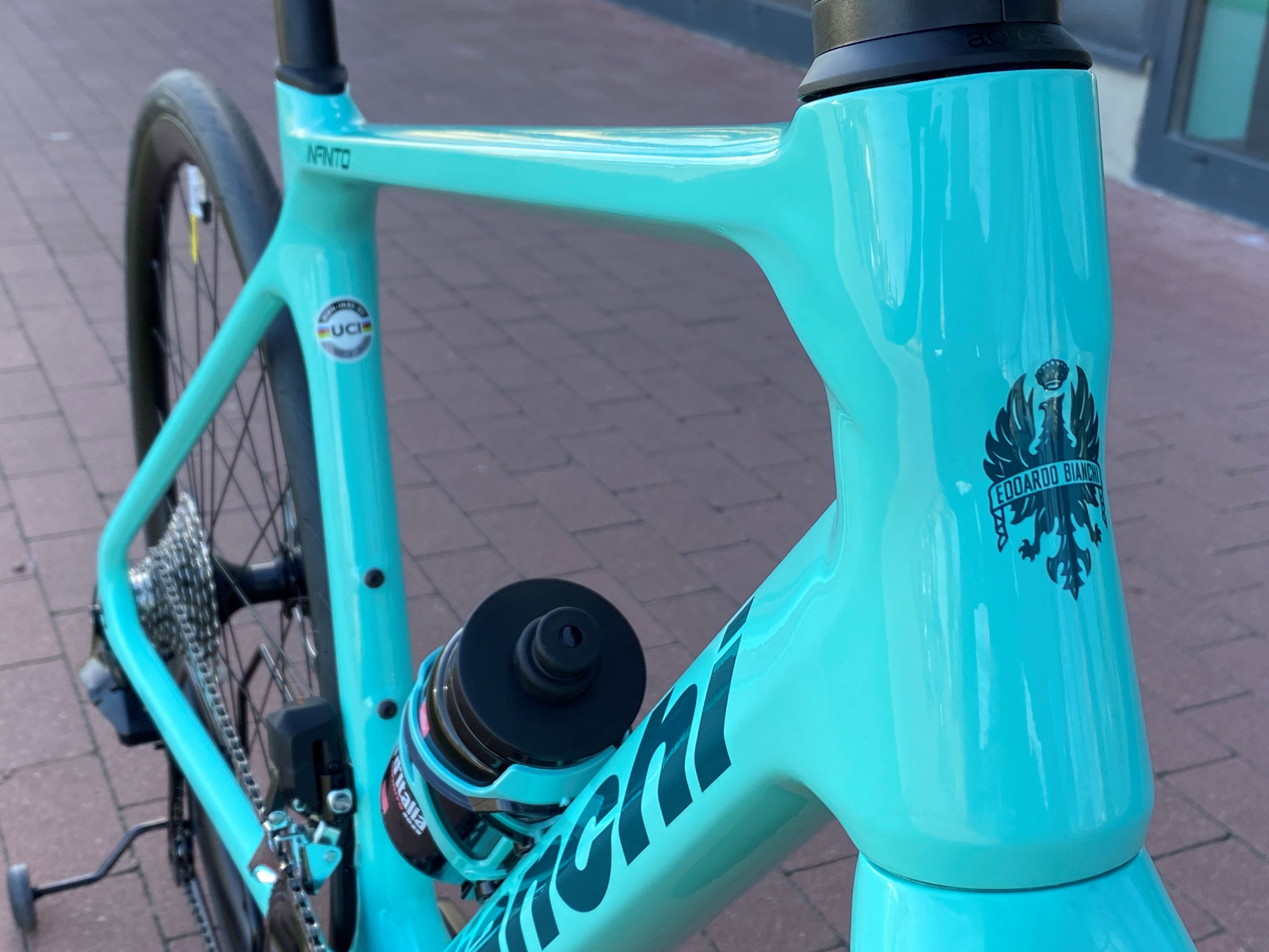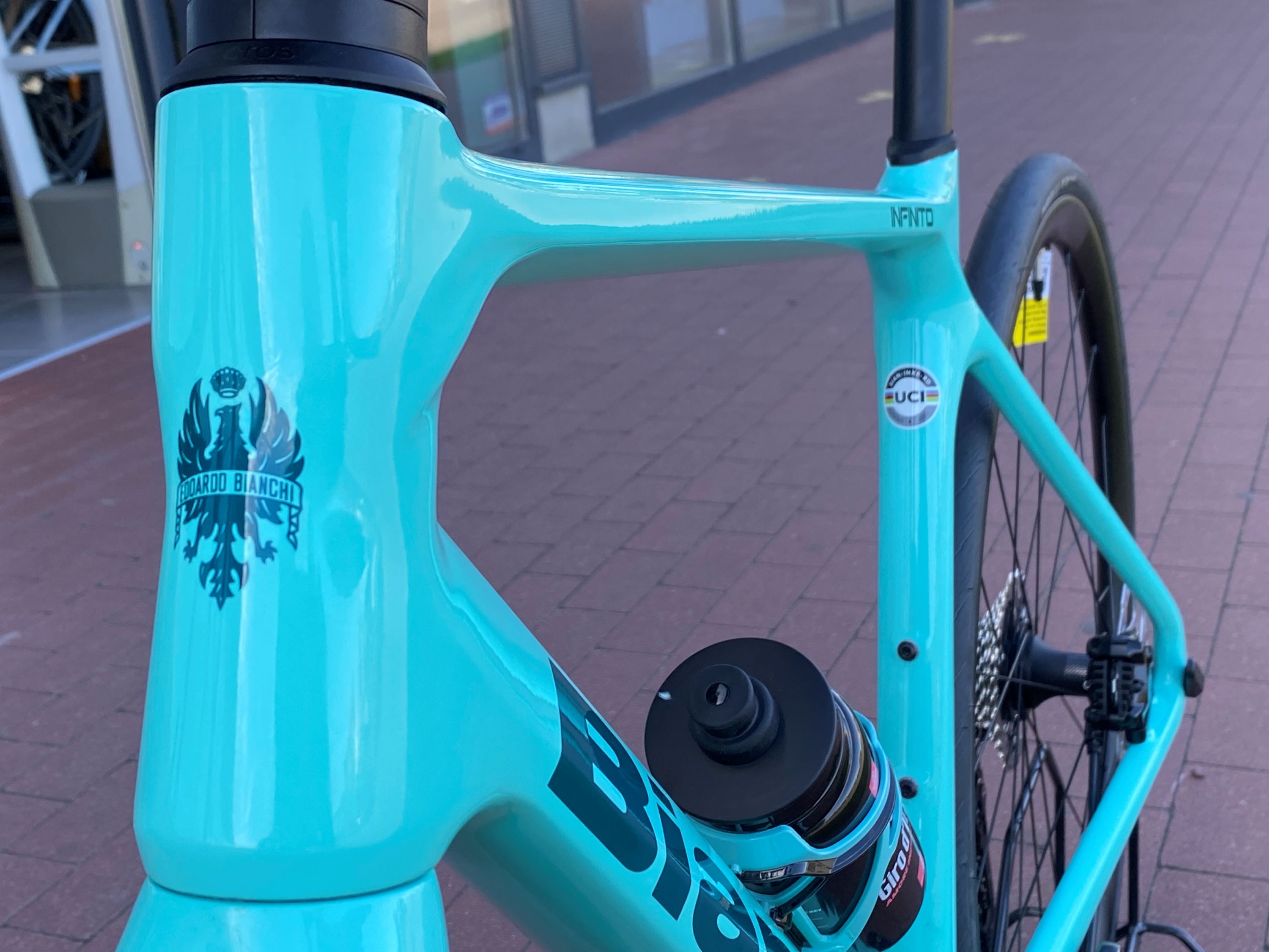 BIANCHI INFINITO ICR CARBON Rama pod mechaniczny i elektroniczny układ napędowy, wewnętrzne prowadzenie przewodów pod hamulce tarczowe, sztywna oś 12x142mm Thru Axle |