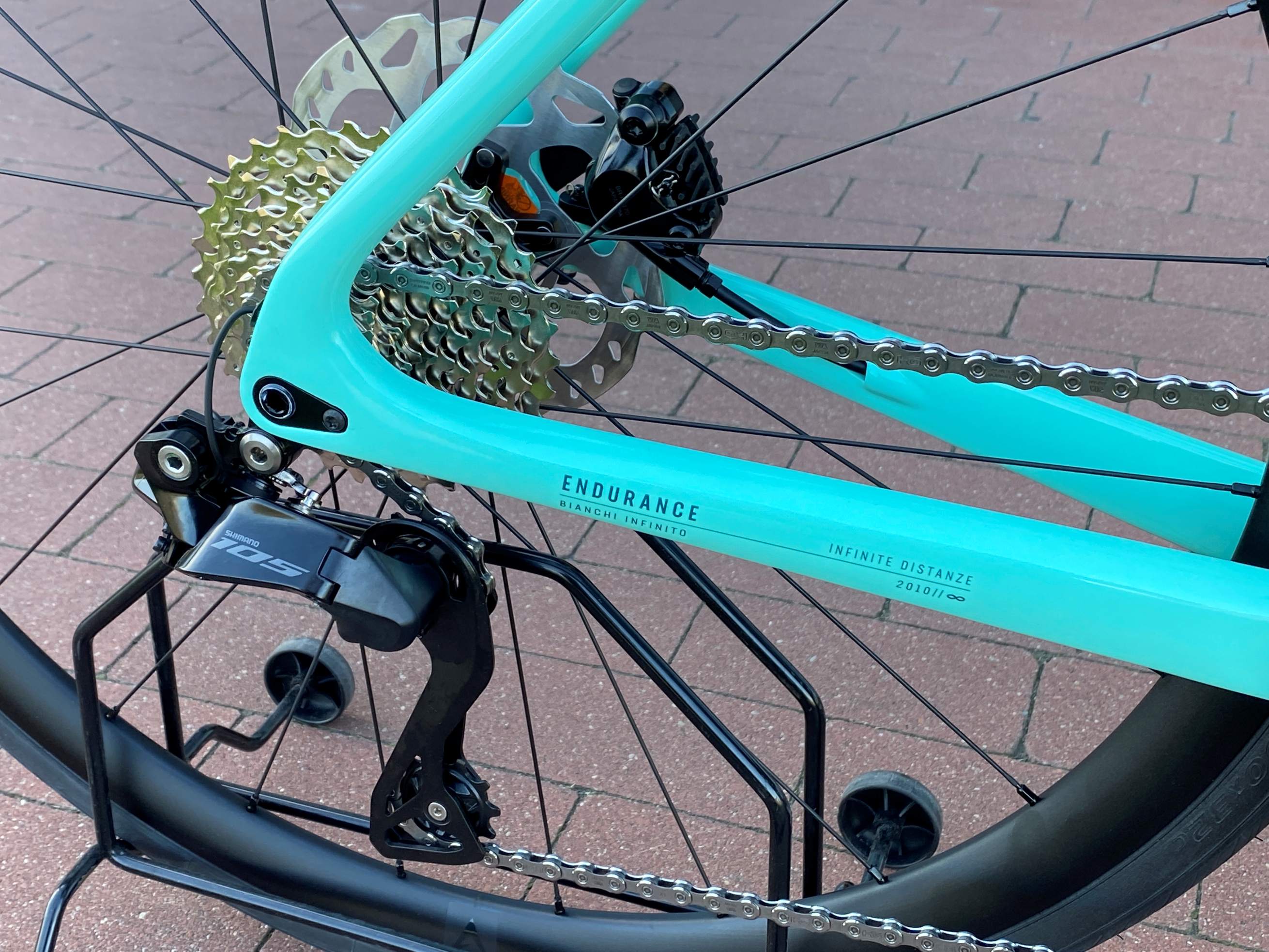 | WIDELEC | BIANCHI FULL CARBON pod hamulec tarczowy, wewnętrzny kabel hamulcowy, sztywna oś Thru Axle 12x100 | |